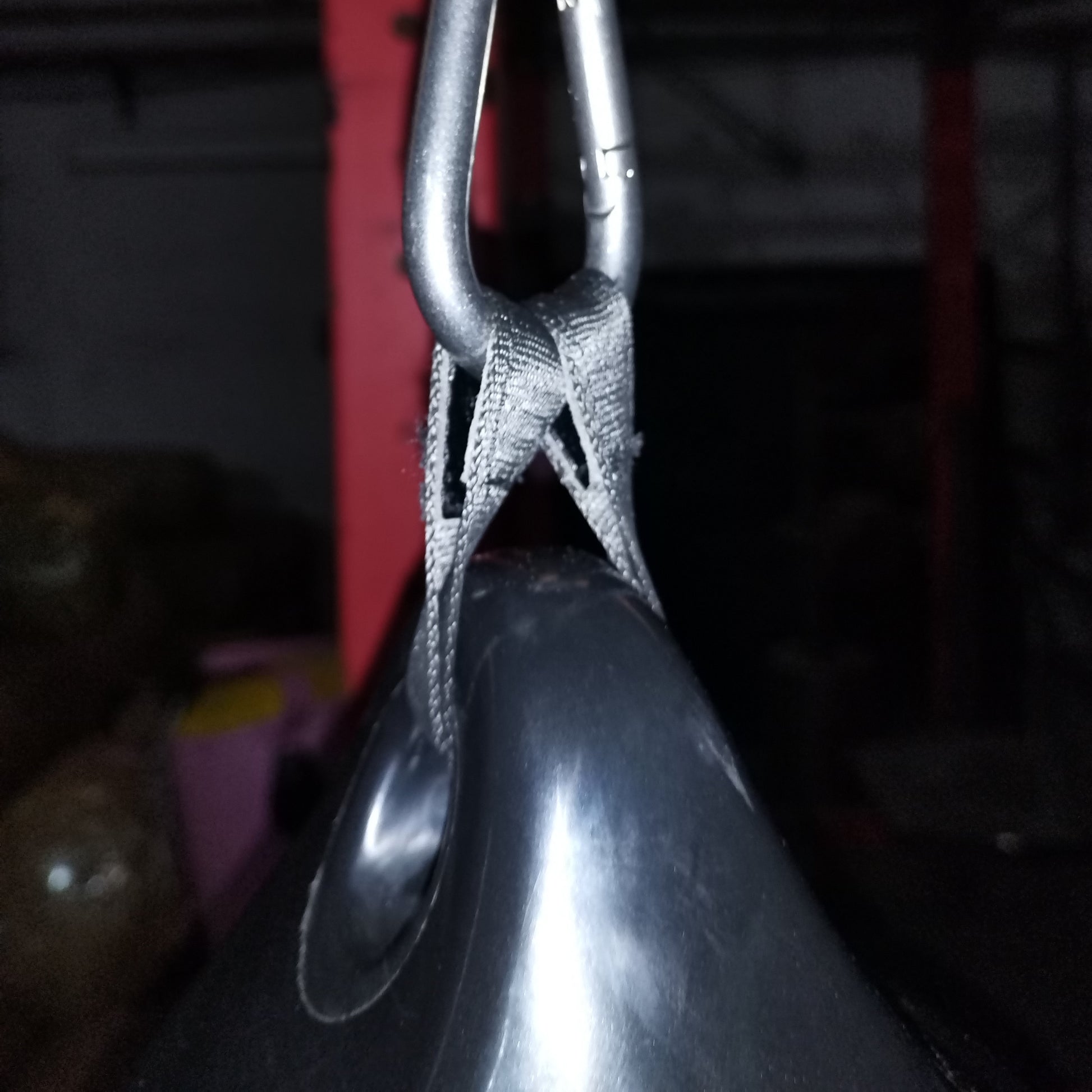 A protective strap that prevents the bag's straps from being worn out by the metal hook.