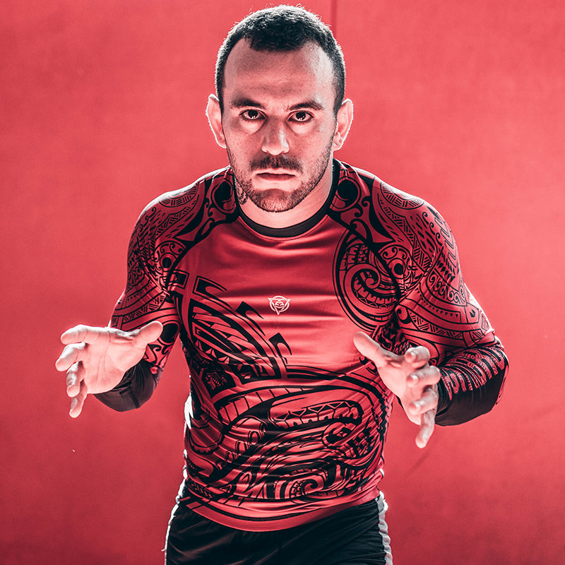 Raglan Sleeve Construction: Enhances upper-body mobility while providing complete coverage and protection during grappling, striking, or conditioning work.